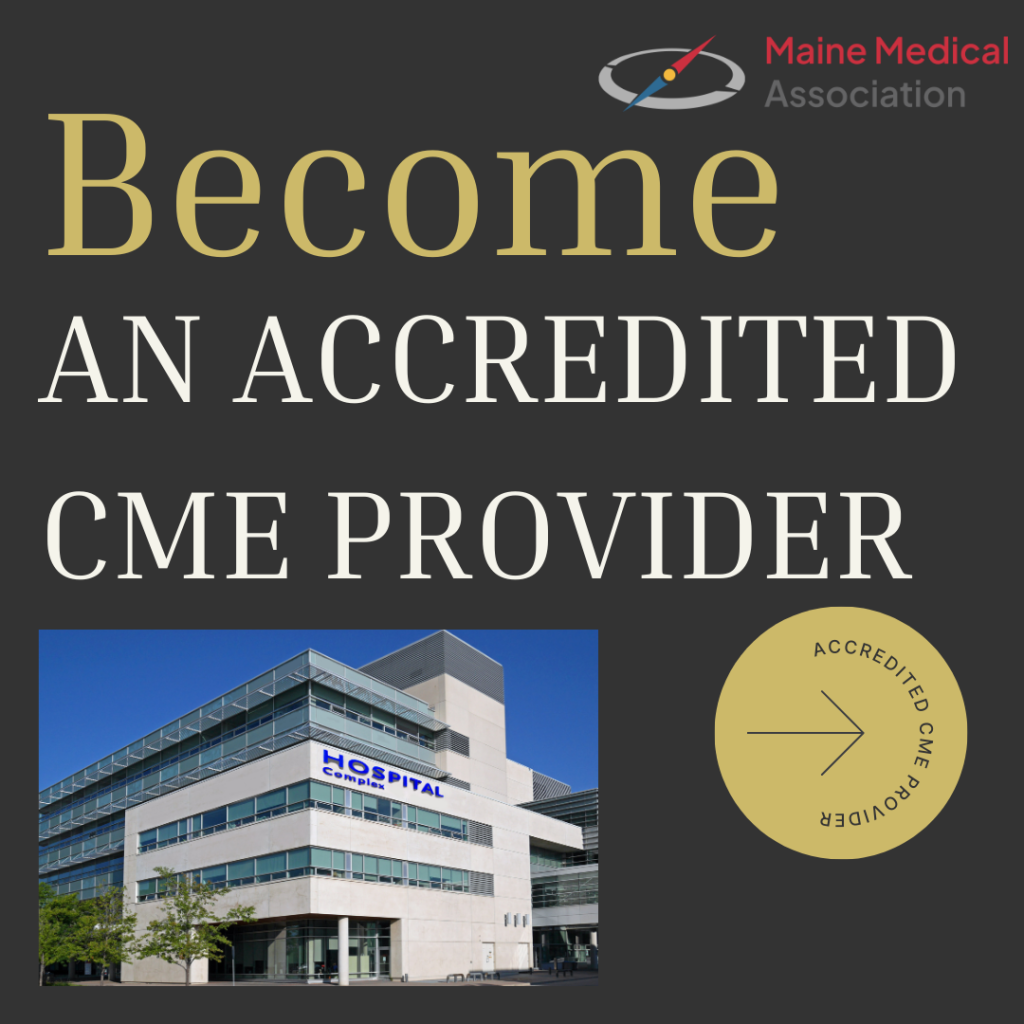 The Maine Medical Association’s Committee on Continuing Medical Education and Accreditation (CCMEA) is recognized by the Accreditation Council for Continuing Medical Education (ACCME) to accredit eligible organizations in Maine to provide continuing medical education (CME).